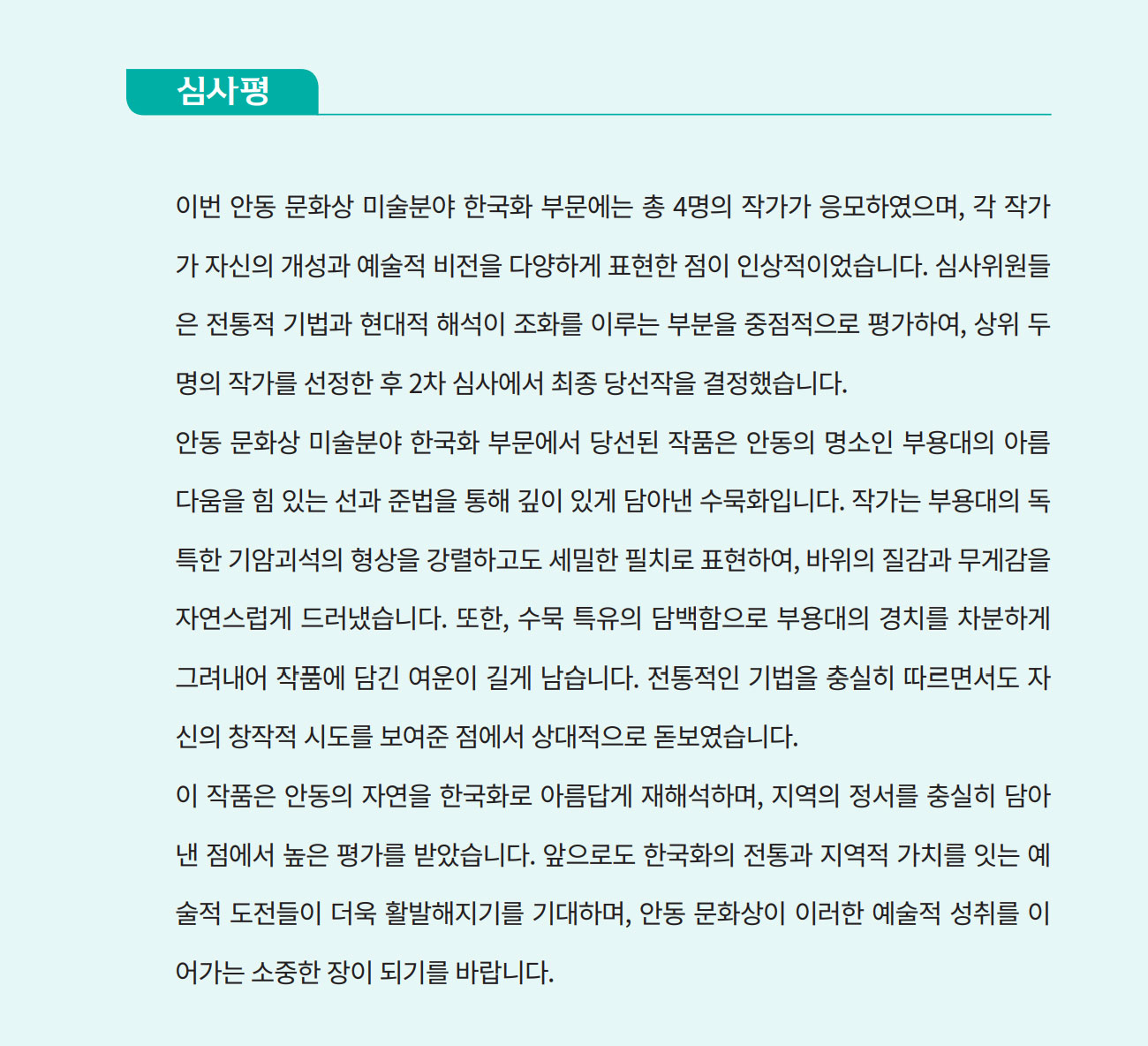 안동문화상 선정작