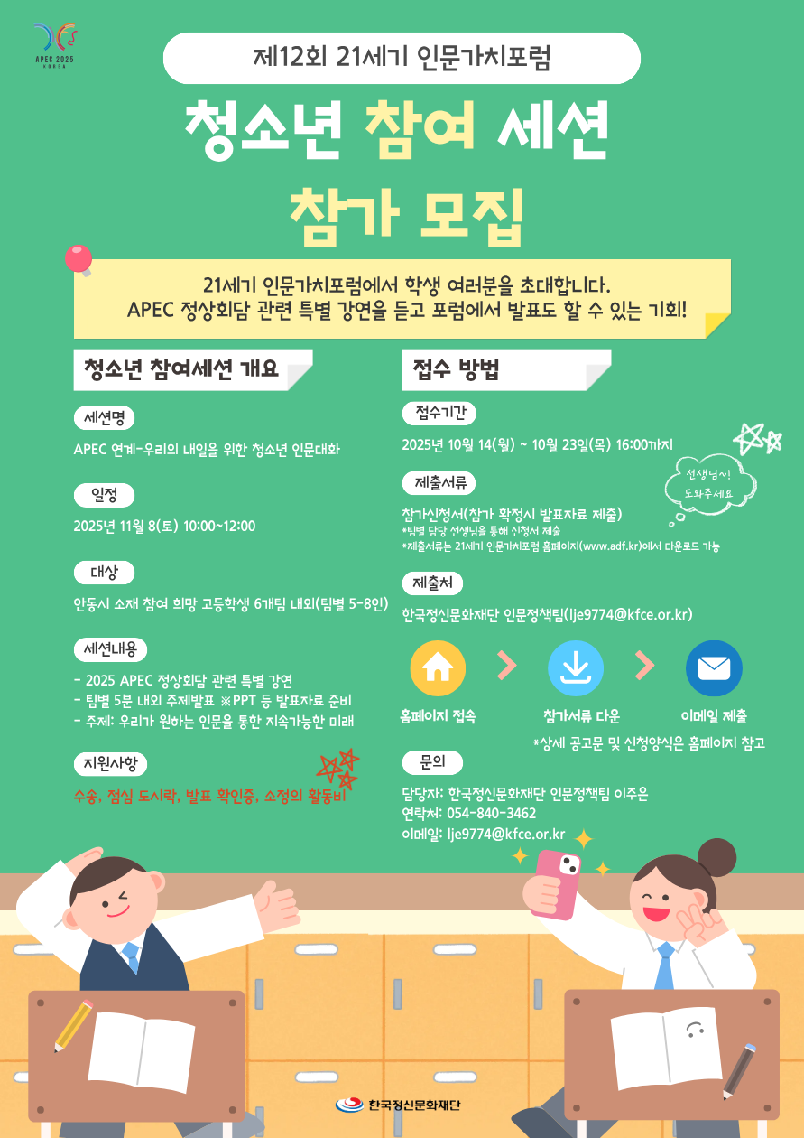 「제12회 21세기 인문가치포럼 – 청소년 참여 세션」 참가 공모