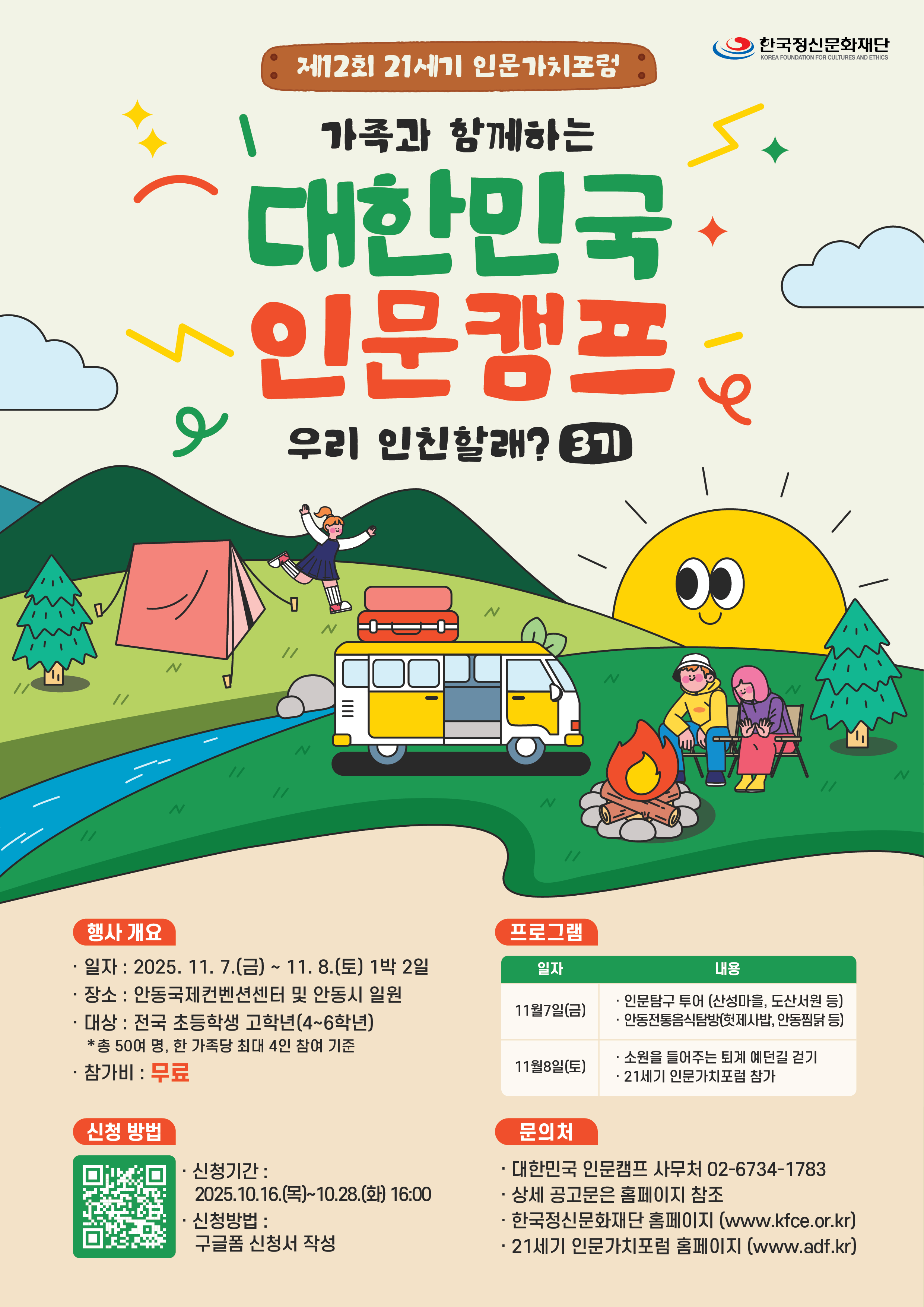 「가족과 함께하는 대한민국 인문캠프」 참가자 모집 공고