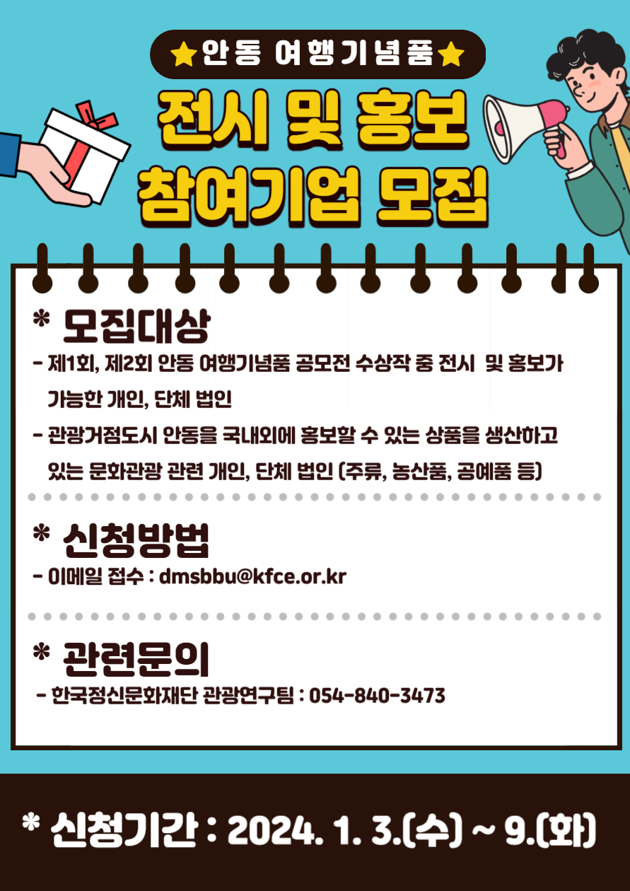[공고 제2024-001호] 안동 여행기념품 전시 및 홍보 참여기업 모집공고