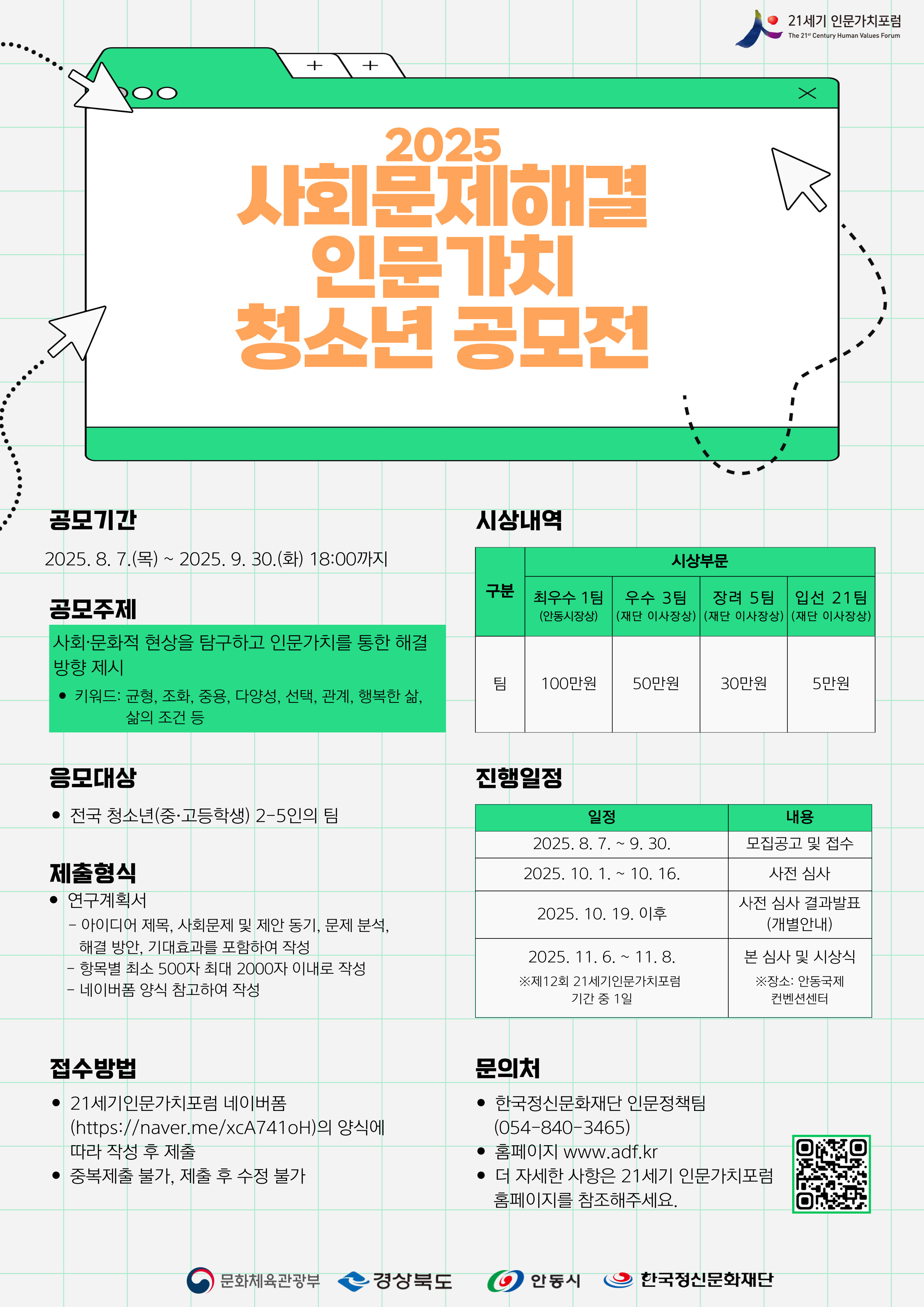 2025 사회문제해결 인문가치 청소년 공모전 모집 공고